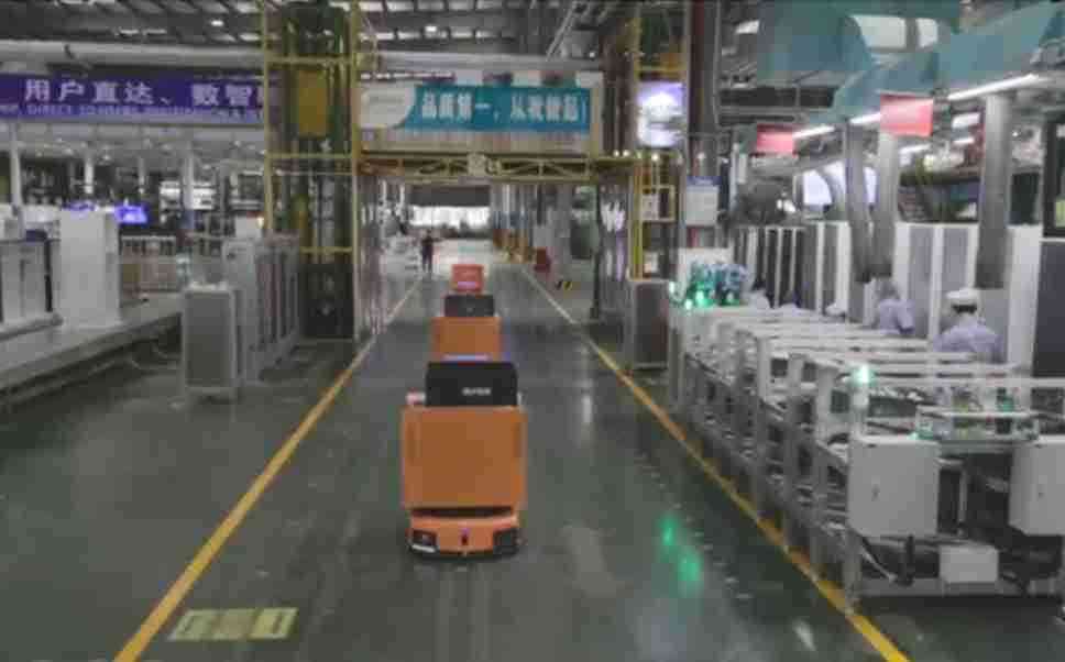 为车载冰箱物流配送打造的智能解决方案,,,包含产中物流通过潜伏举升AMR搬运至线边,,,,产后成品物流智能仓储,,流程包含产中物流智能齐套入库,,,线边安灯叫料AMR智能配送至线边,,,成品入库、、、、出库,,,通过无人堆高车机器人,,,,智能仓储管理替代人工作业管理,,,,实现更高存储、、、更高效率、、、更具柔性化的解决方案。。